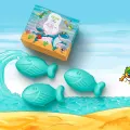 Conteúdo: Caixa com 3 unidades em formato de baleia de 90 g cada. Cartucho com desenhos para colorir.