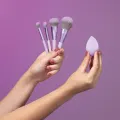 O Kit de Pincéis Tudão Quem Disse, Berenice? é composto por 5 itens: pincéis macios e uma esponja, para aplicação de base, corretivo, pó e blush.