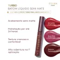 O Batom Líquido Eudora Turbo Semi Matte possui altíssima cobertura, cores intensas e fácil aplicação, para uma lábios marcantes em minutos!